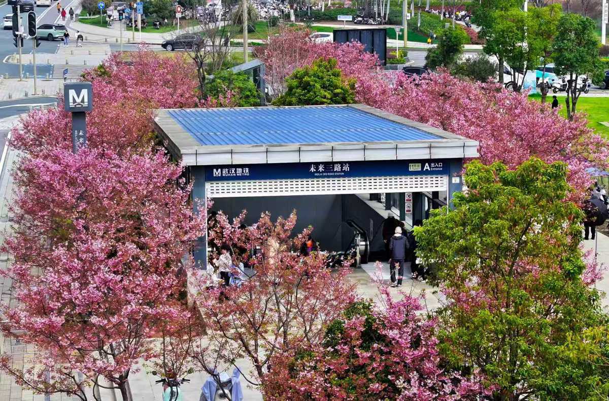 湖北日报讯(记者杨千帆、通信员李丹、产启斗)春光明媚,似锦缀城。在武汉东湖高新区高新大路和左岭大路交织处,地铁11号线翌日三路地铁站A进出口处,数排樱花树按序绽开。粉红色花瓣随风轻扬,暖和环绕着所有进出口,如统一幅灵动的春日画卷走红网罗开yun体育网,被誉为“最好意思地铁进出口”。