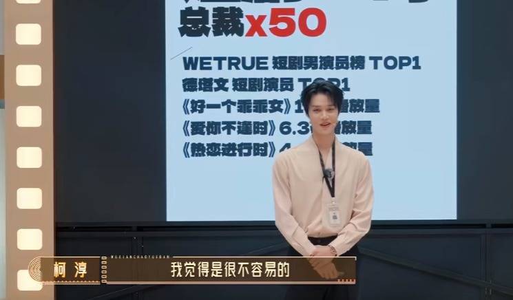 更好笑的是柯淳在节目里报怨短剧拍摄珍视,强度太大,我方是用人命换来的这样多标签。