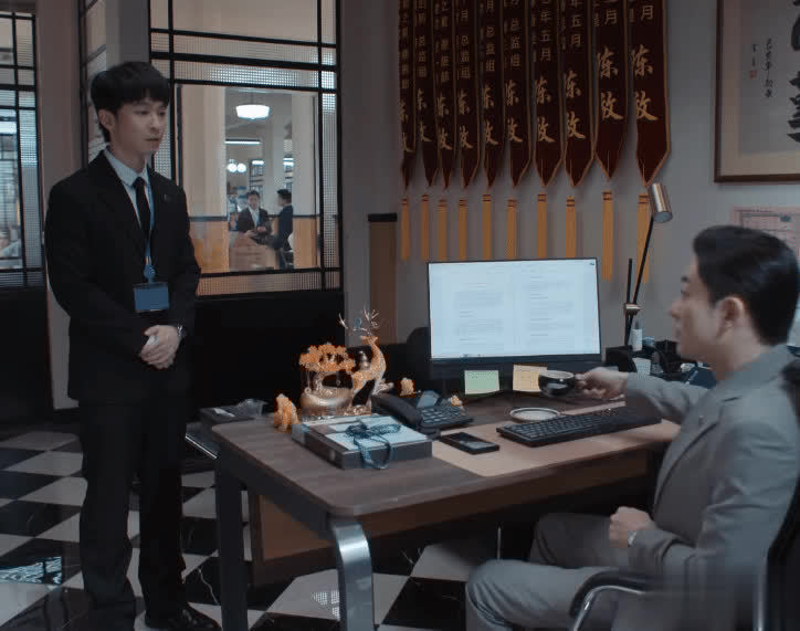 新剧中刘钧扮演了金振华,他误合计胡曼黎要跳槽,话里话外的暗意她,微微低着头,抬起眼来看着对方,话语抿着嘴等胡曼黎的响应,颇有压迫感。