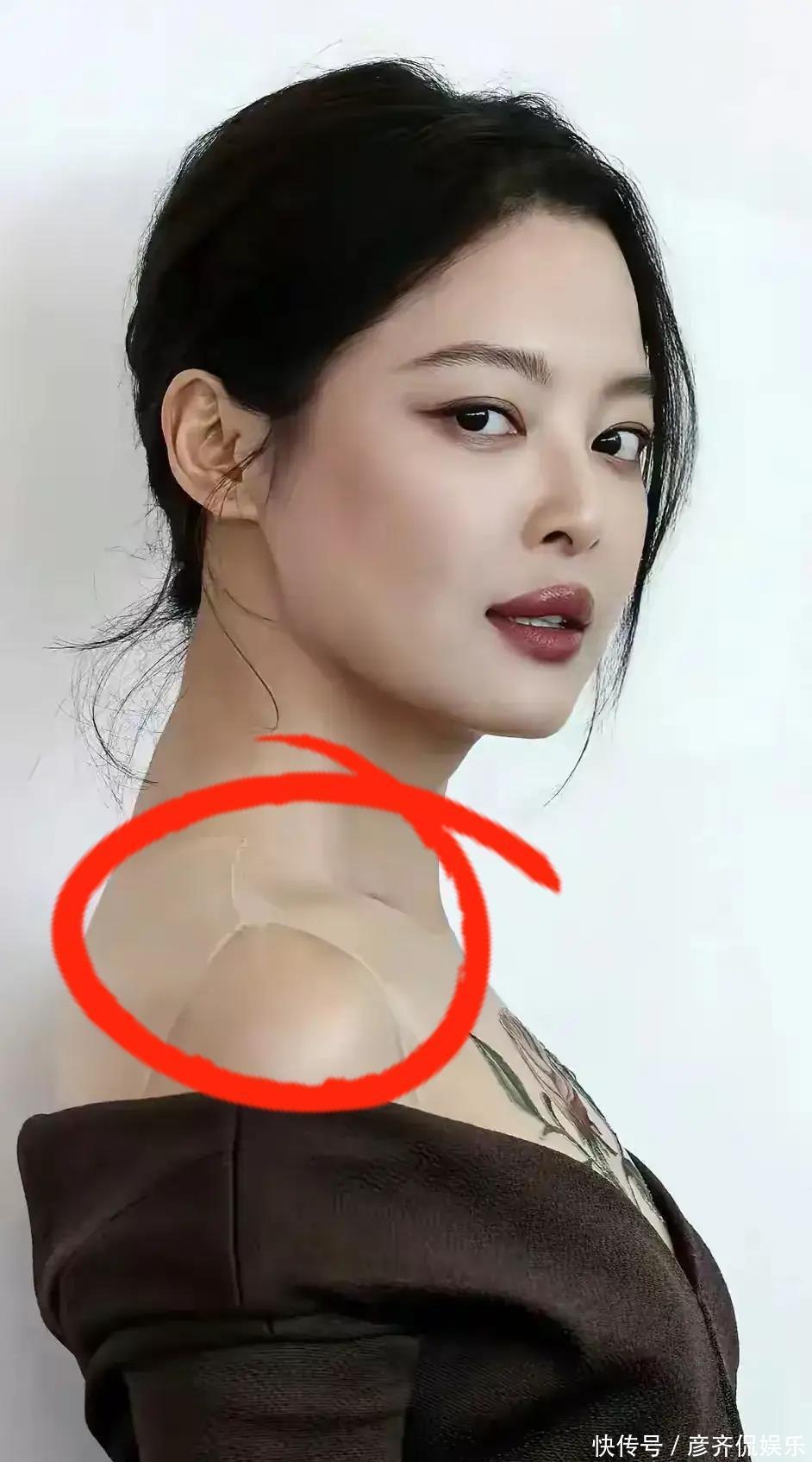 事实说明,这位网友猜对了,仔细不雅看视频画面会发现,其实辛芷蕾胸前的并不是纹身,而是一块接近肤色的薄纱。