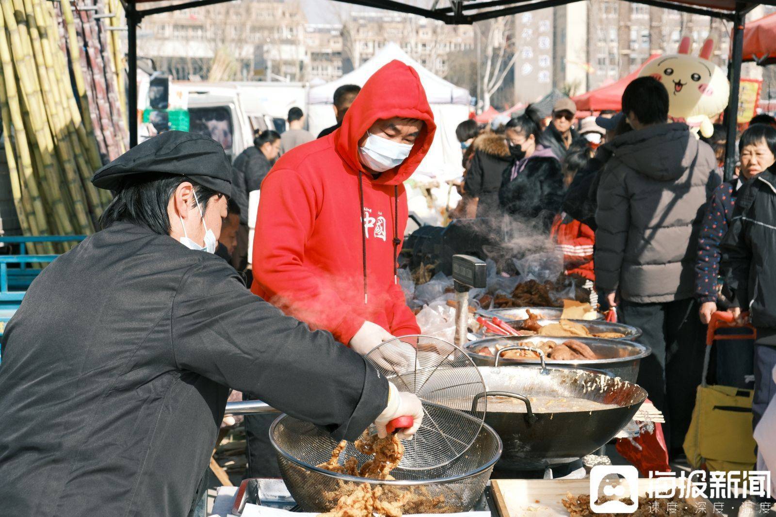 买炸货的小摊前排起了长队。