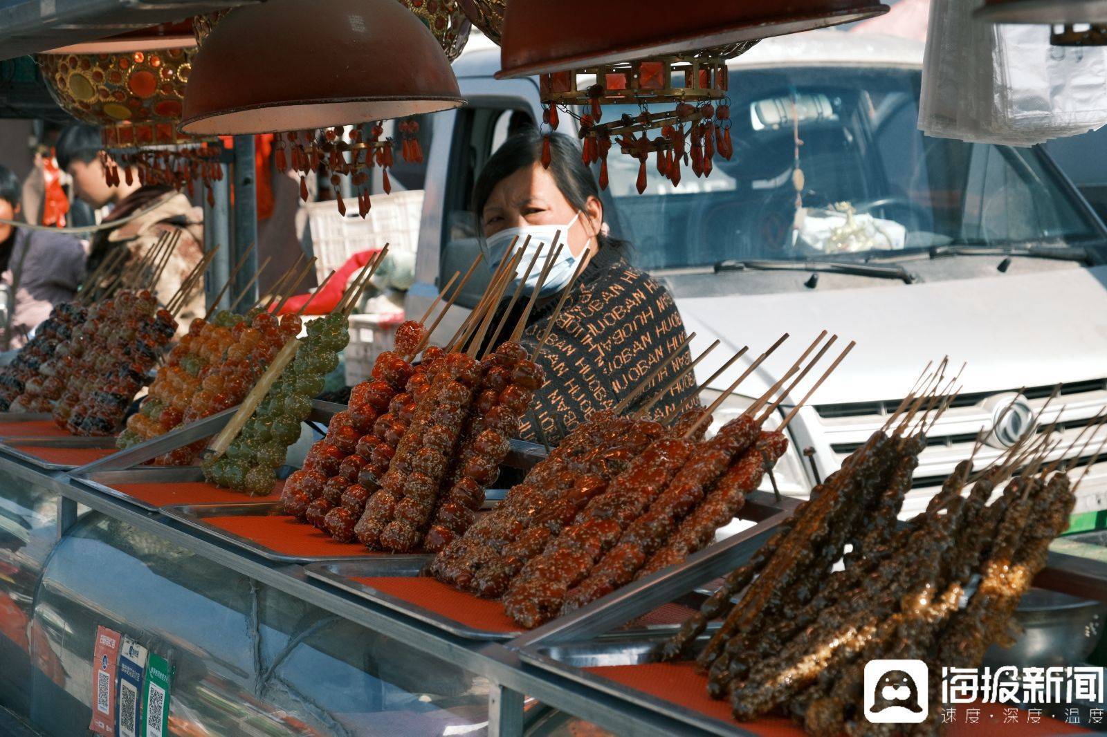 五颜六色、成列整都的糖葫芦。