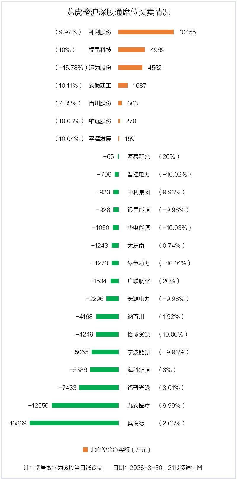 北向资金净买入7股,净卖出16股3月30日,北向资金参与龙虎榜中的个股共有23只,磋磨净卖出4.31亿元。其中沪股通净买入2股,净卖出6股,磋磨净卖出2.66亿元;深股通净买入5股,净卖出10股,磋磨净卖出1.65亿元。