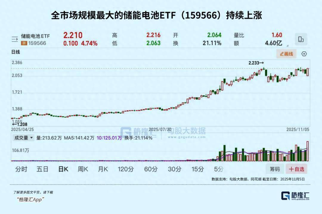 最近20日,超越5.39亿元净流入储能电板ETF(159566),使得该ETF的总范围达到21.43亿元,成为全市集范围最大的储能联系ETF。